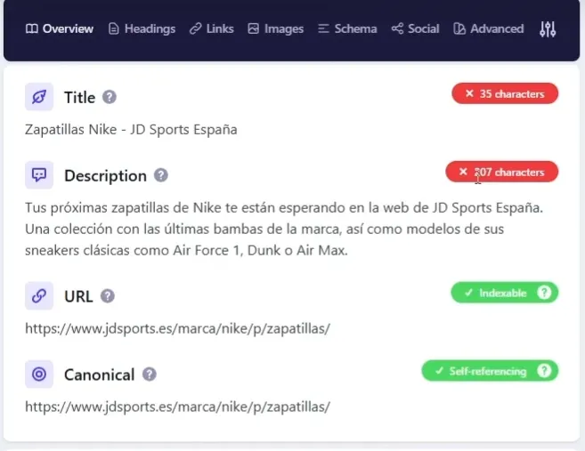 Esta extensión se enfoca en aspectos técnicos que son críticos para el rendimiento SEO, como el metatítulo, la metadescripción, la indexabilidad y la etiqueta canónica de la página.